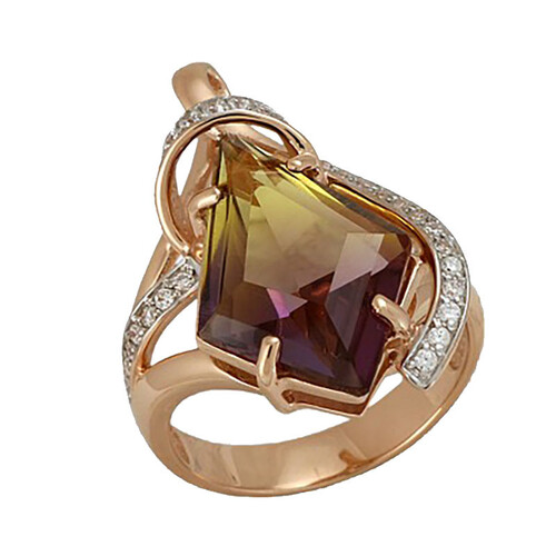Кольцо в серебре с топазом и фианитами 005222