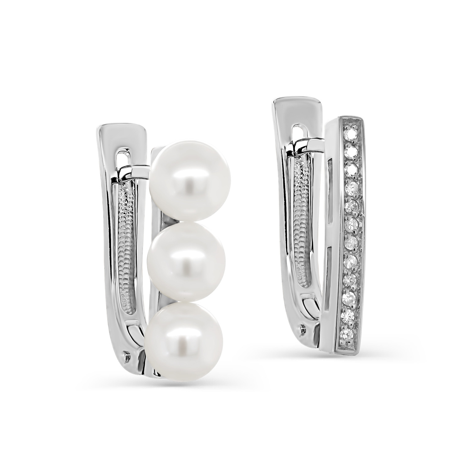 Серьги из белого золота с жемчугом и бриллиантами 028357