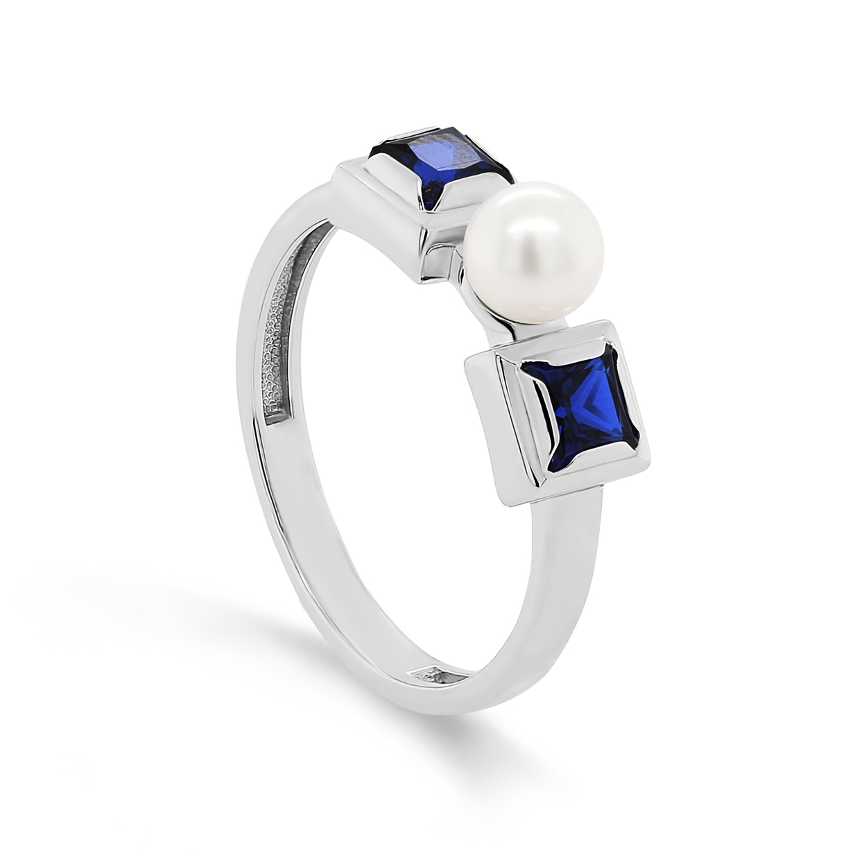 [NAME] => Кольцо из серебра с жемчугом имитац. и фианитами