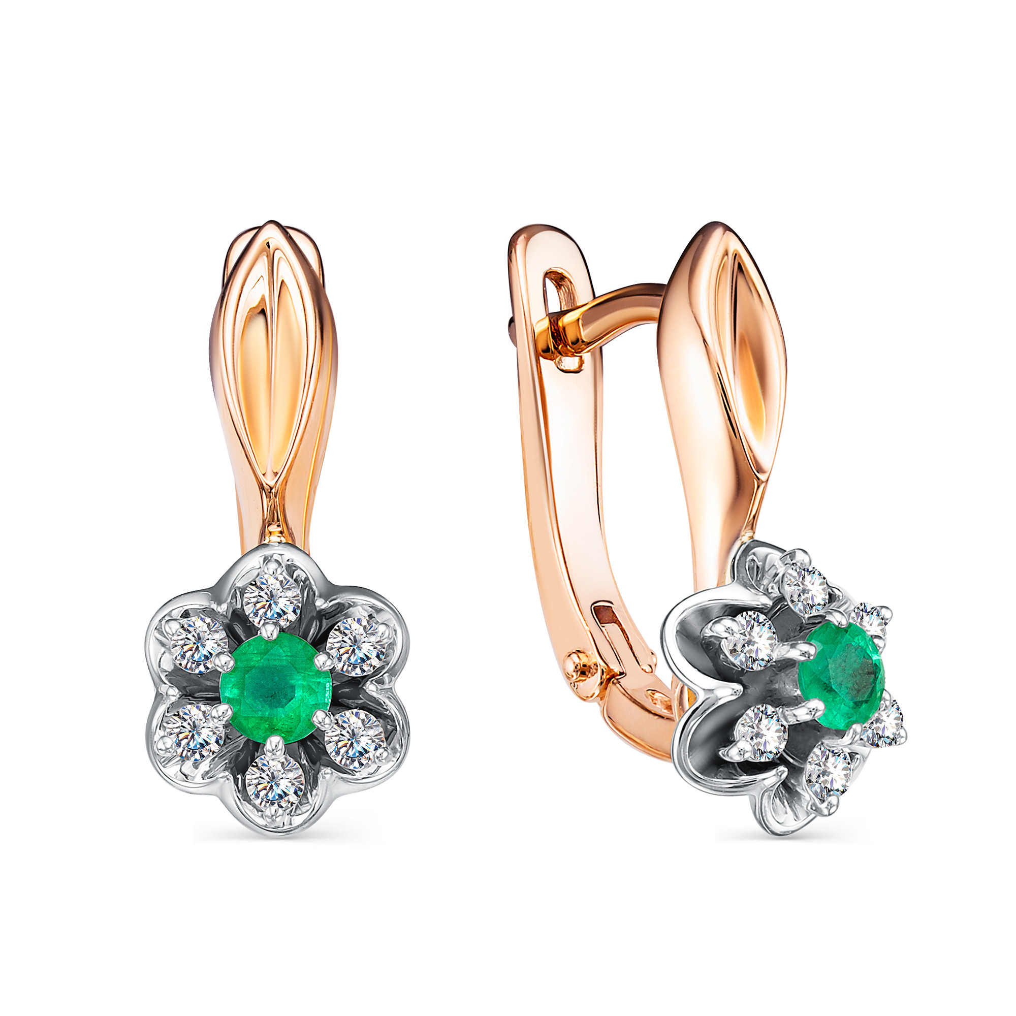 Серьги из красного золота с изумрудами и бриллиантами 029123