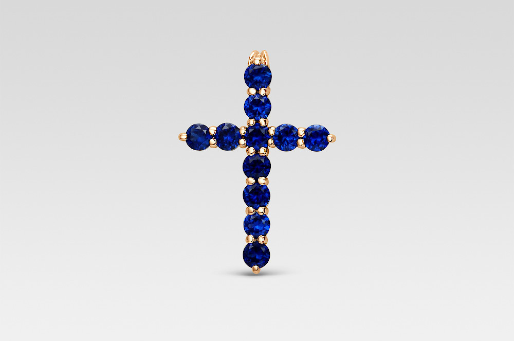 Крест из красного золота с сапфирами