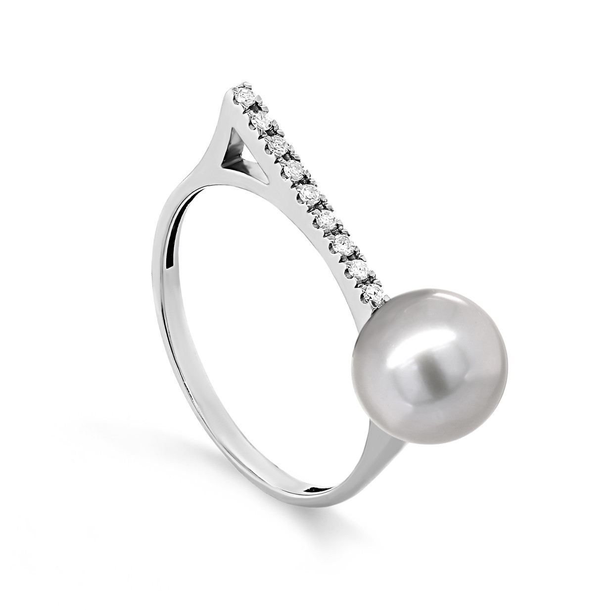 Кольцо из белого золота с бриллиантами и жемчугом 032544
