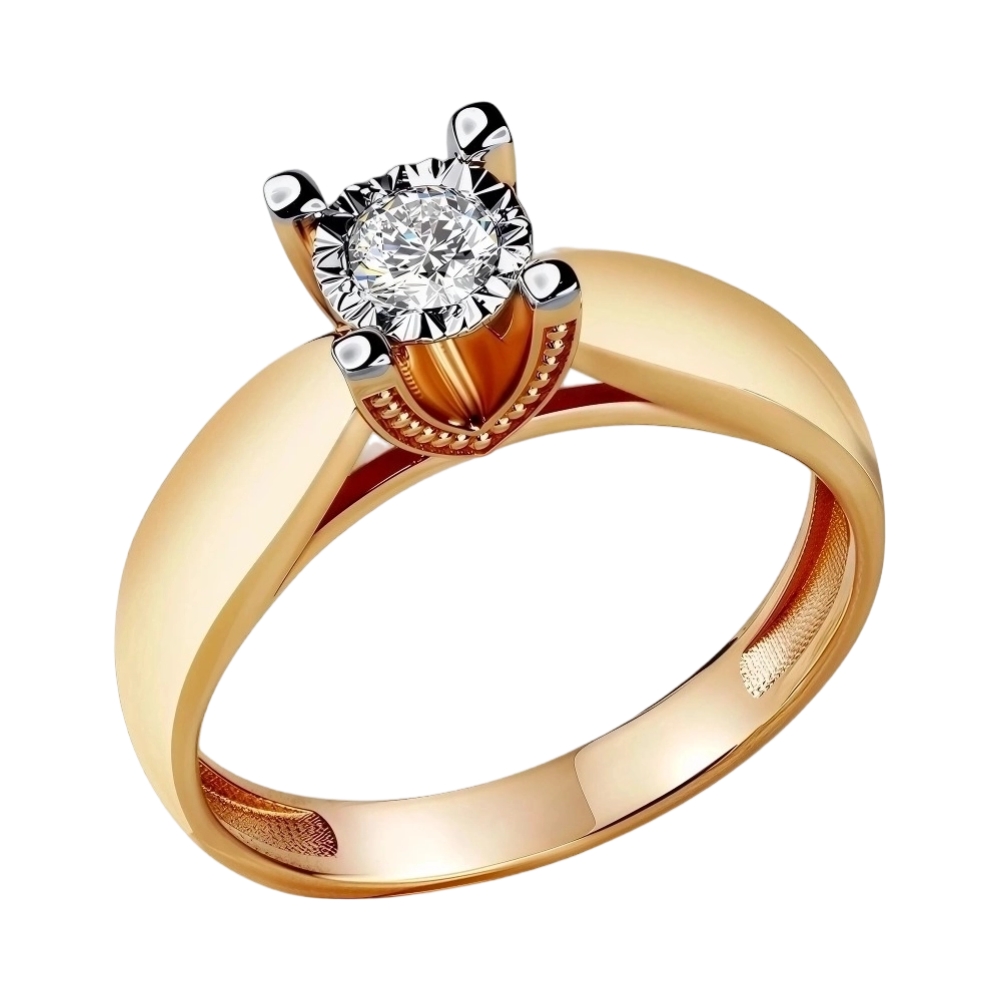 Кольцо помолвочное из красного золота с бриллиантом