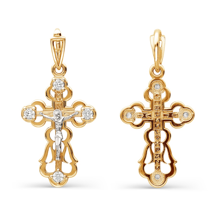 Крест из красного золота с фианитами 070580