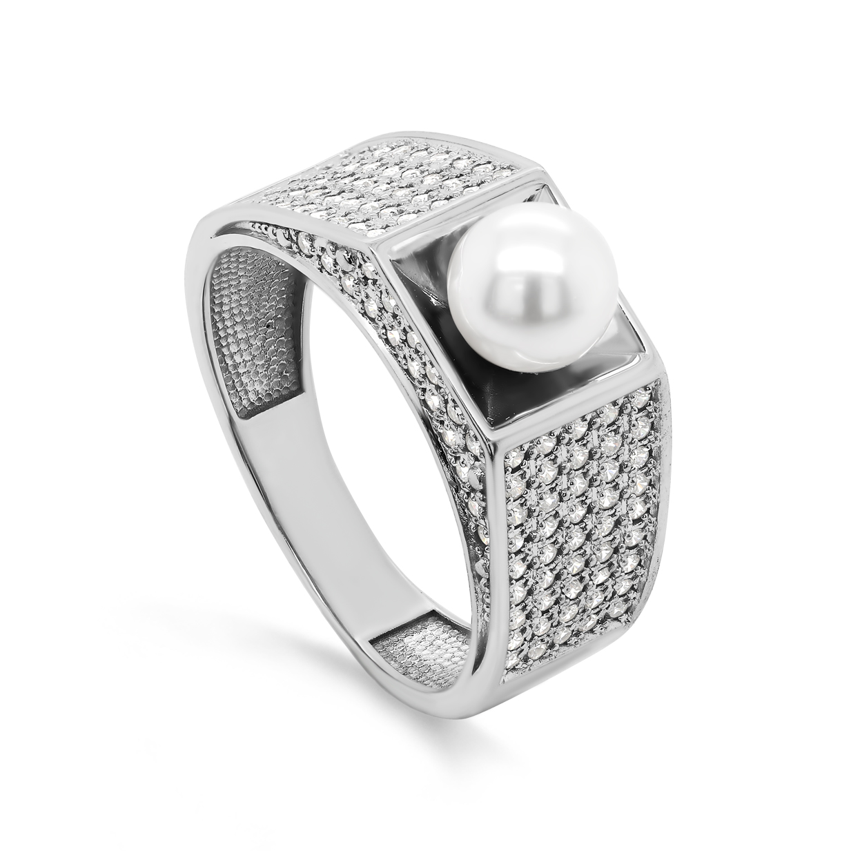 [NAME] => Кольцо из серебра с жемчугом и фианитами