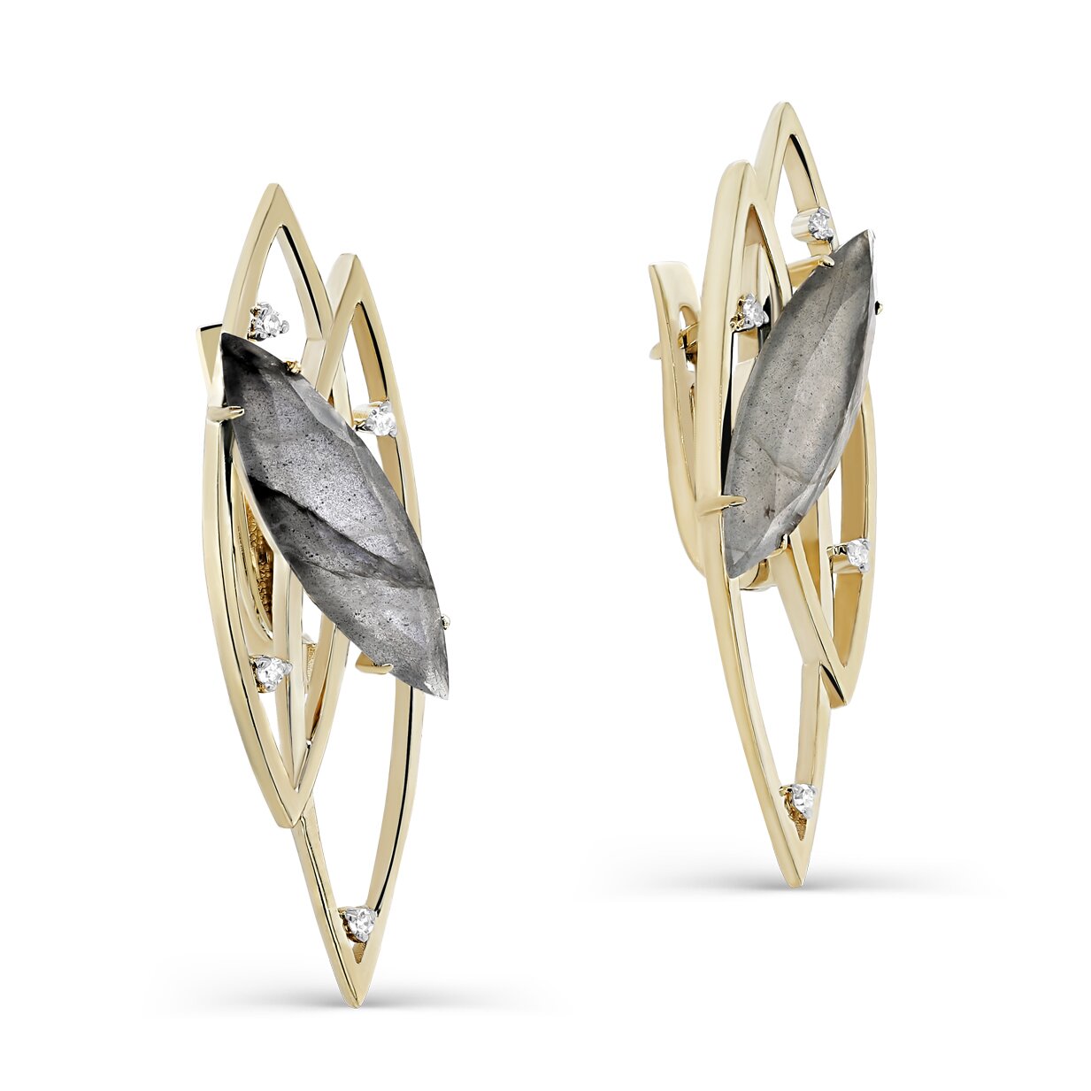 Серьги из жёлтого золота с лабрадоритами и бриллиантами 072368