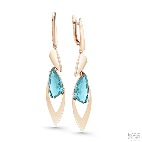 Серьги из красного золота с аквамаринами 083423