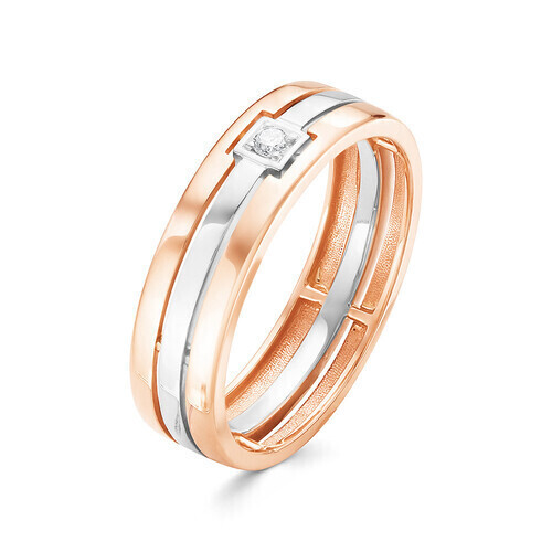 Универсальное обручальное кольцо биколор, выполненное из красного и белого золота, прекрасно подойдёт как мужчине, так и женщине. Бриллиант в эффектном квадратном обрамлении придаёт модели шарм и актуальность.