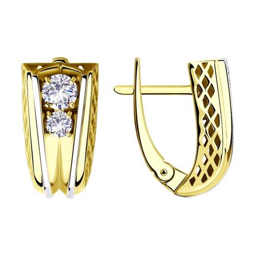 Серьги из желтого золота с фианитами