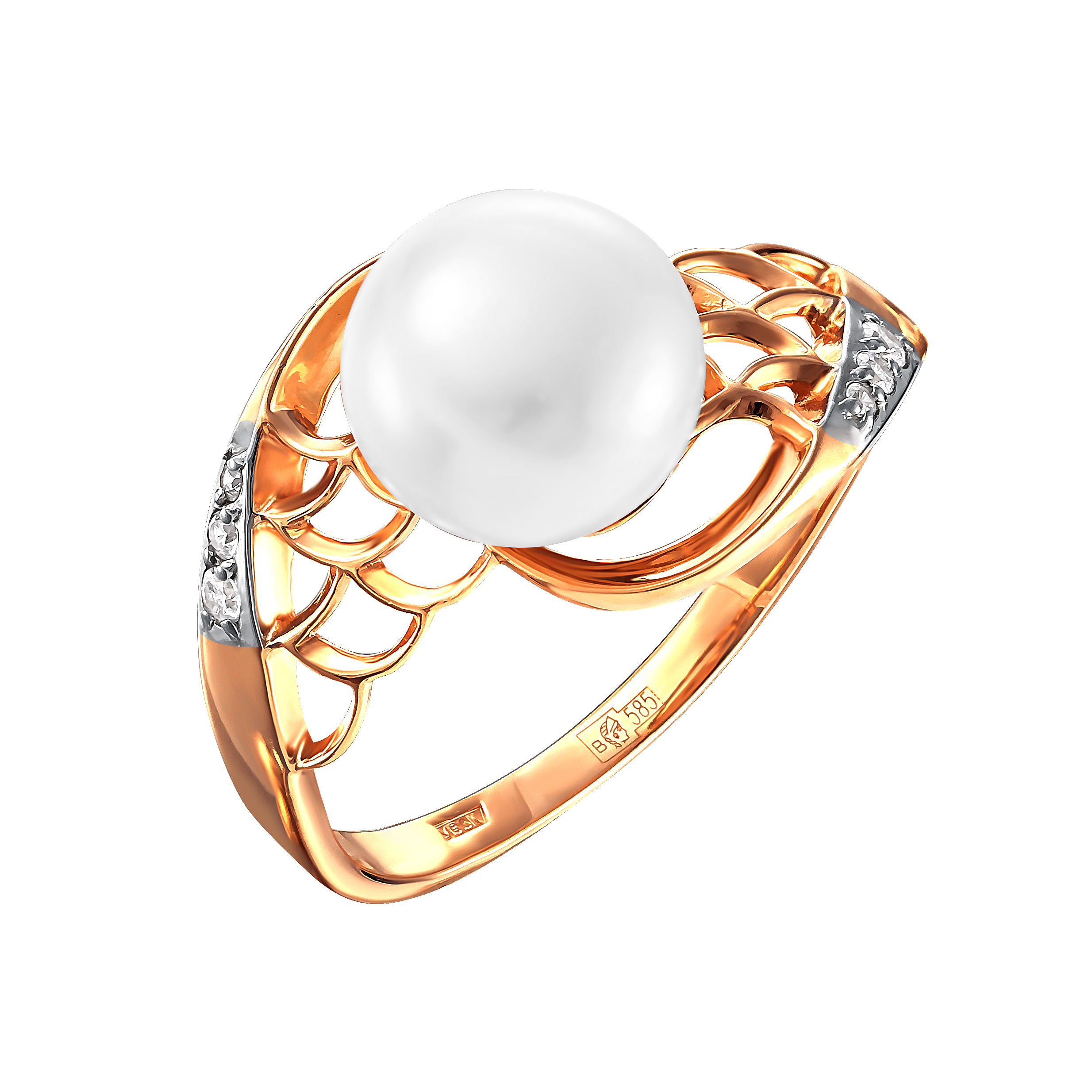 [NAME] => Кольцо из красного золота с жемчугом и фианитами