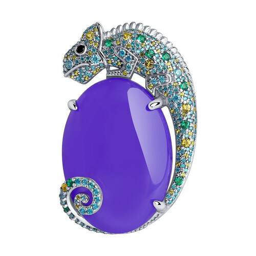 Брошь из серебра с кварцем и фианитами 121821