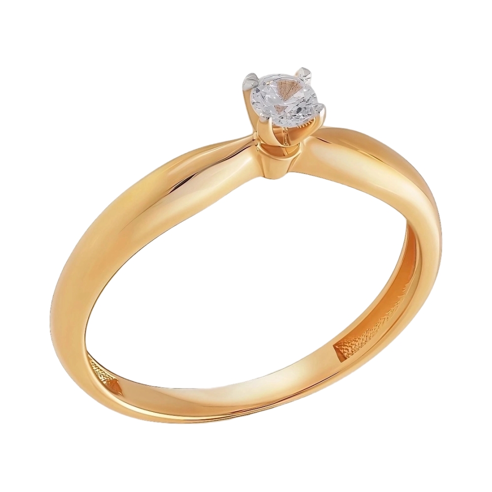 Помолвочное кольцо из красного золота с фианитом