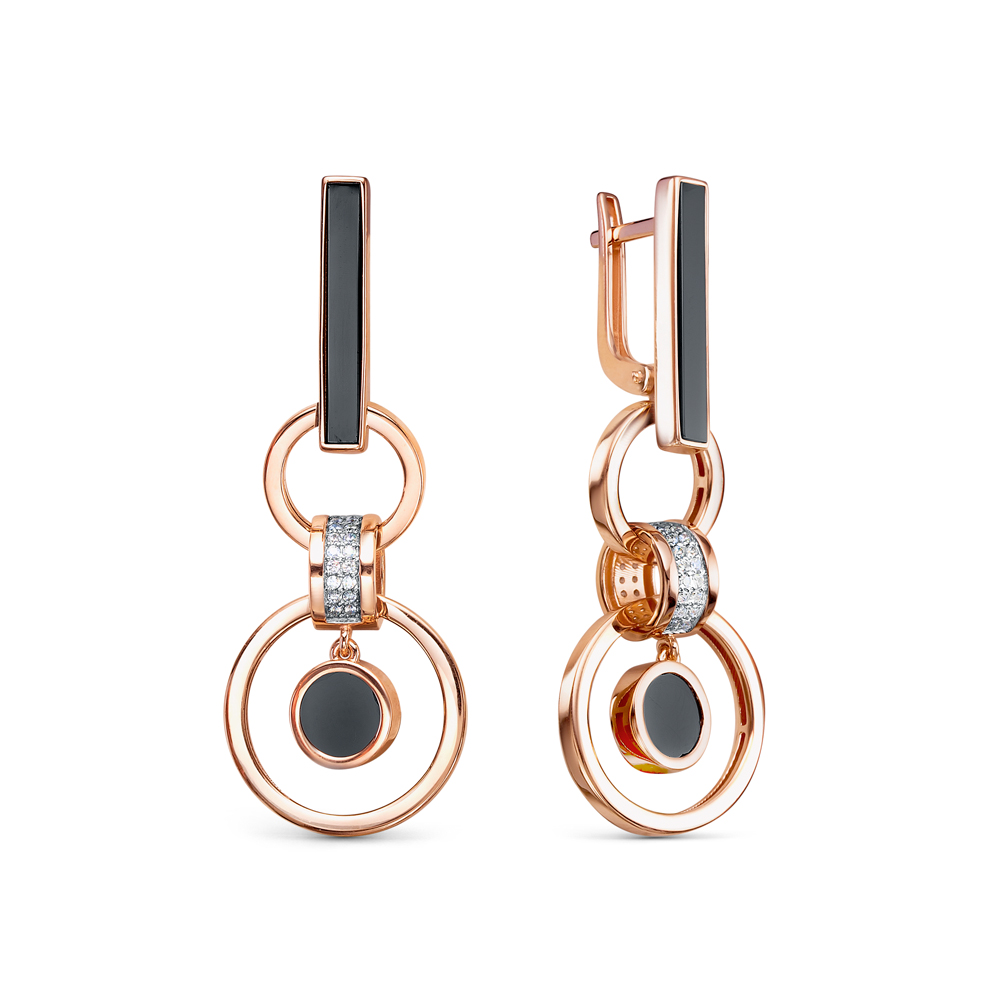 Серьги из красного золота с ониксом и фианитами 122694