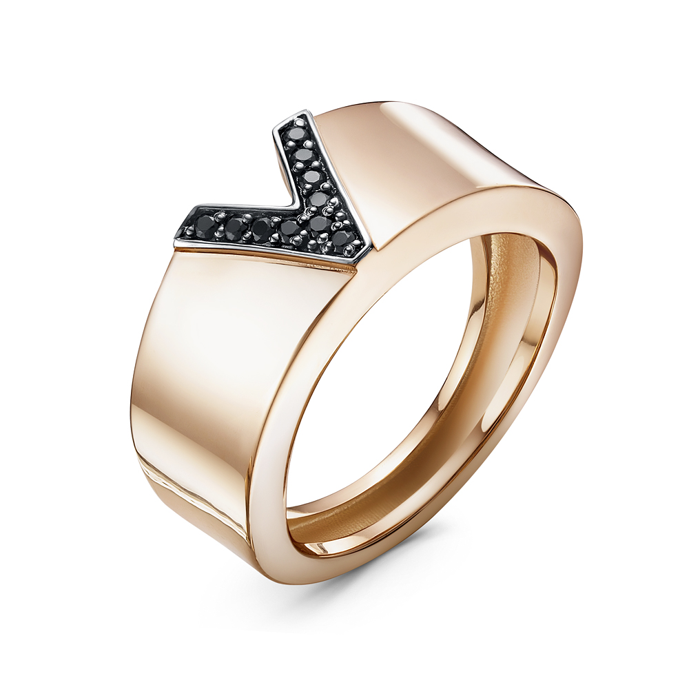 Кольцо из красного золота с чёрными фианитами