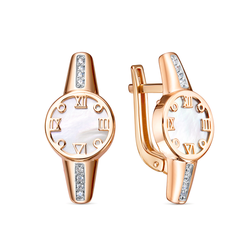 [NAME] => Серьги из красного золота с перламутром и фианитами