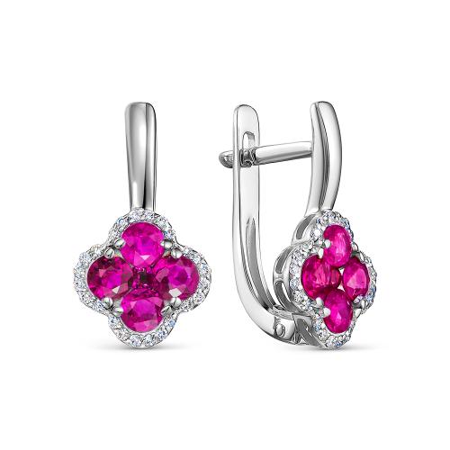 Серьги из белого золота с рубинами и бриллиантами 122935