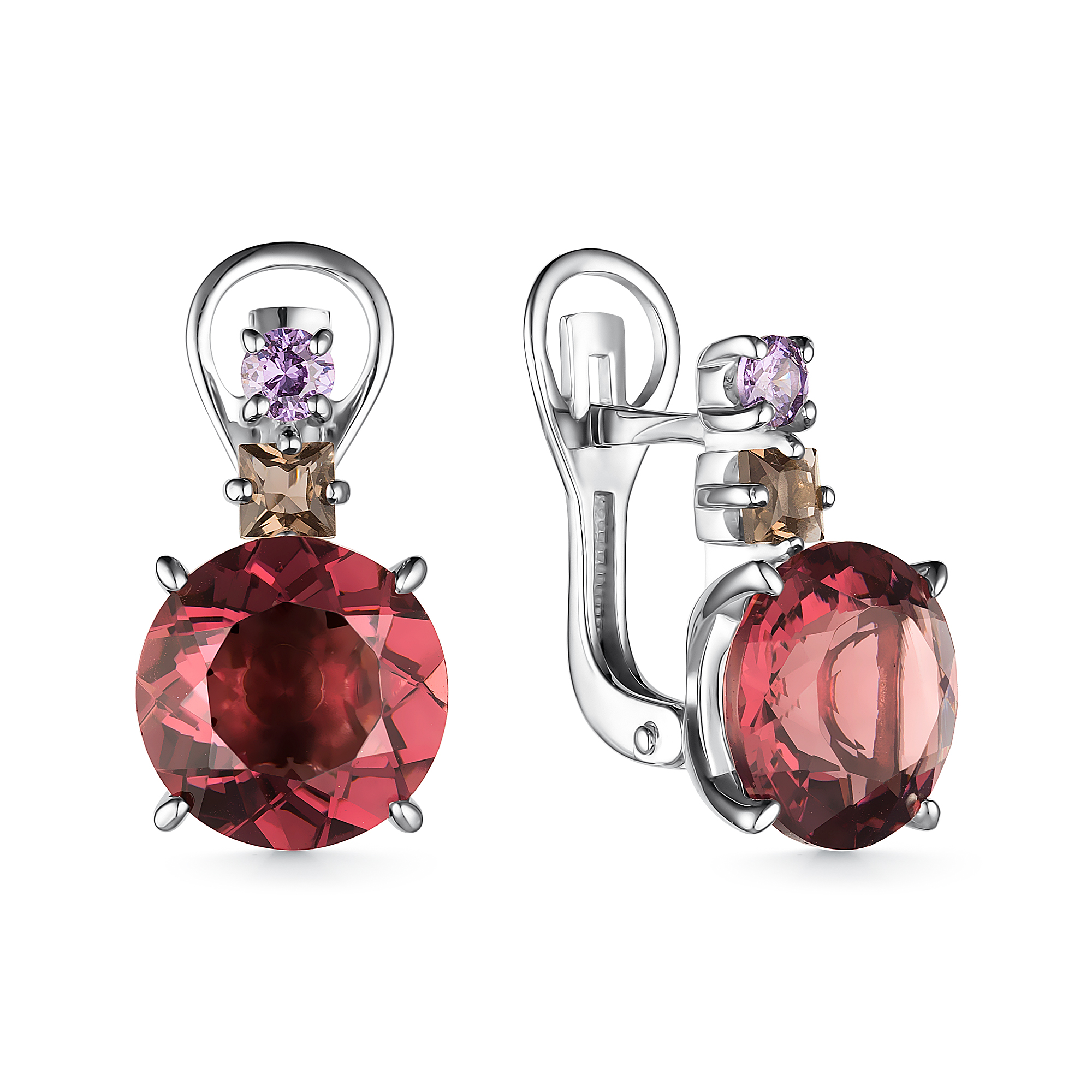Серьги из серебра с кристалом родолита и фианитами 125495