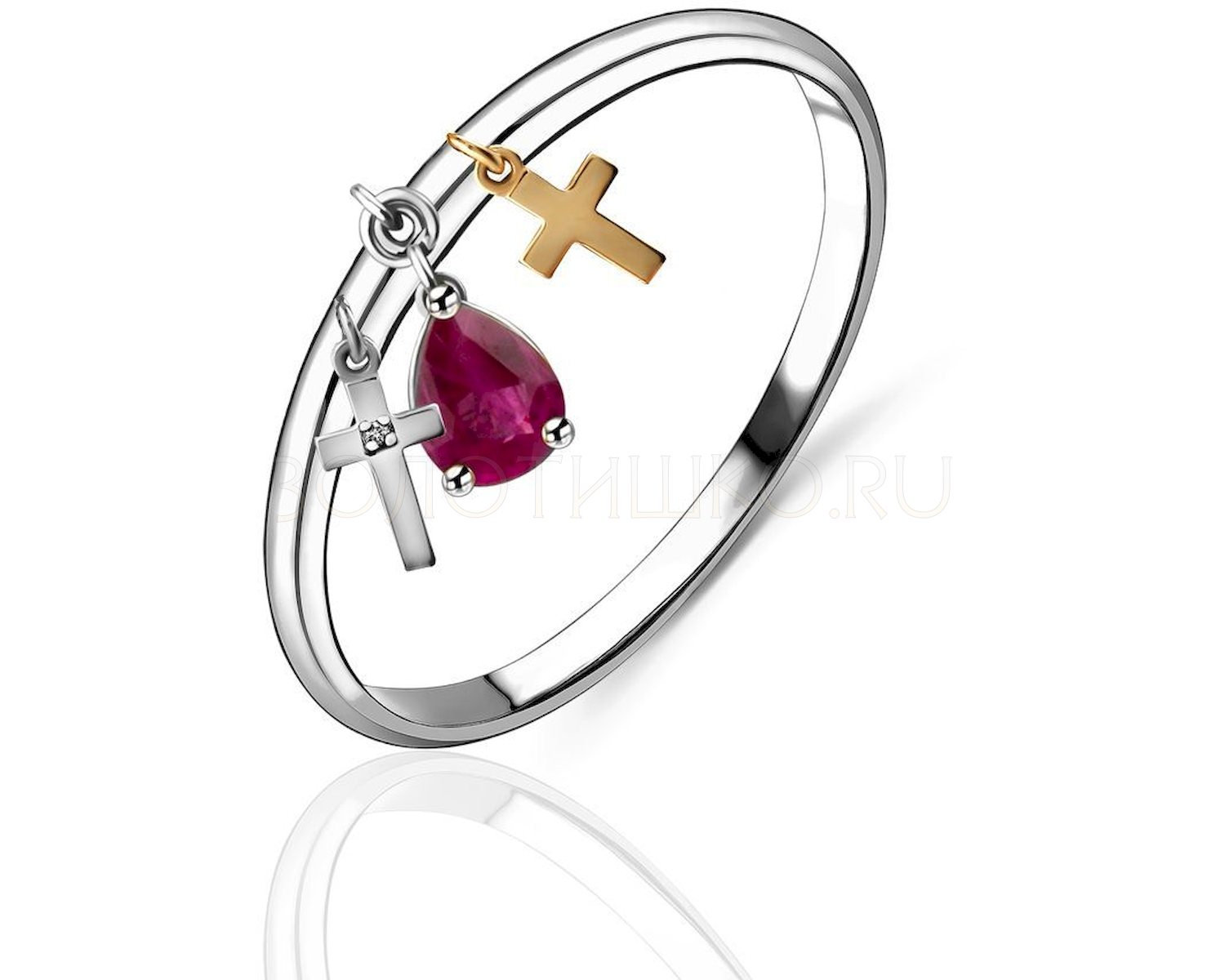 Кольцо в белом золоте с рубином и бриллиантом 132258