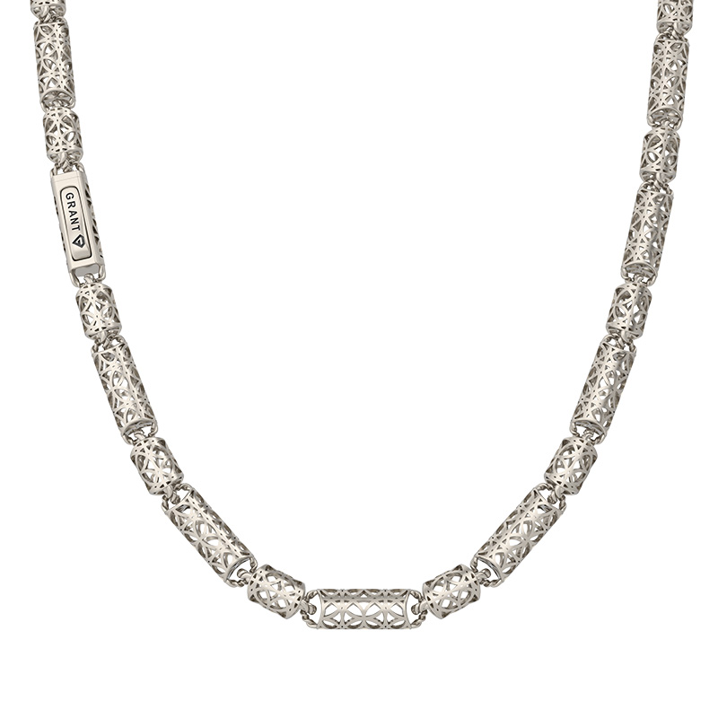 Цепь из белого золота с бриллиантами, фантазийное плетение