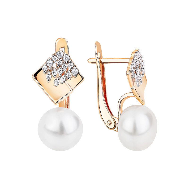 Серьги из красного золота с жемчугом и фианитами 132556