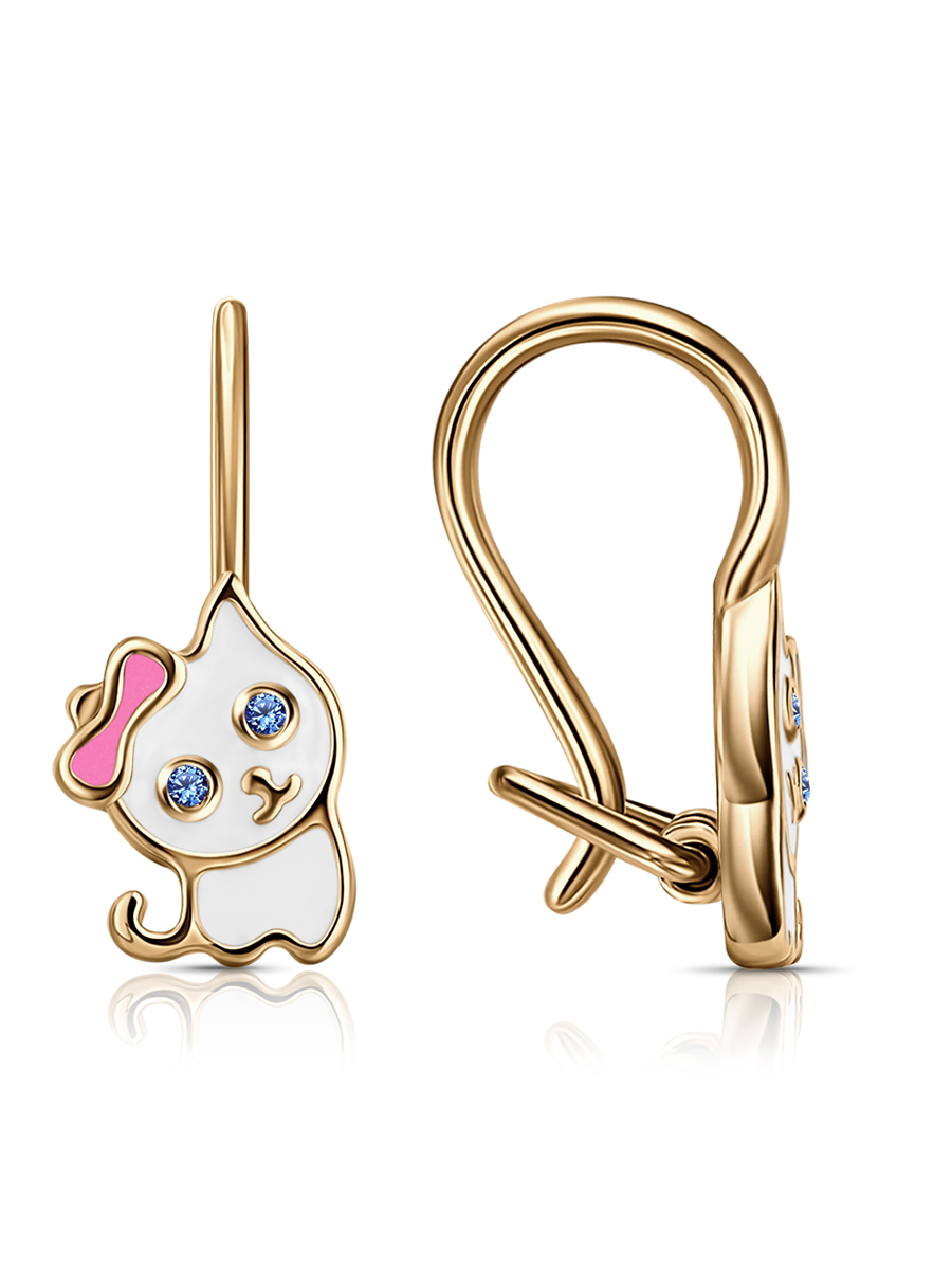 Серьги из красного золота с фианитами и эмалью