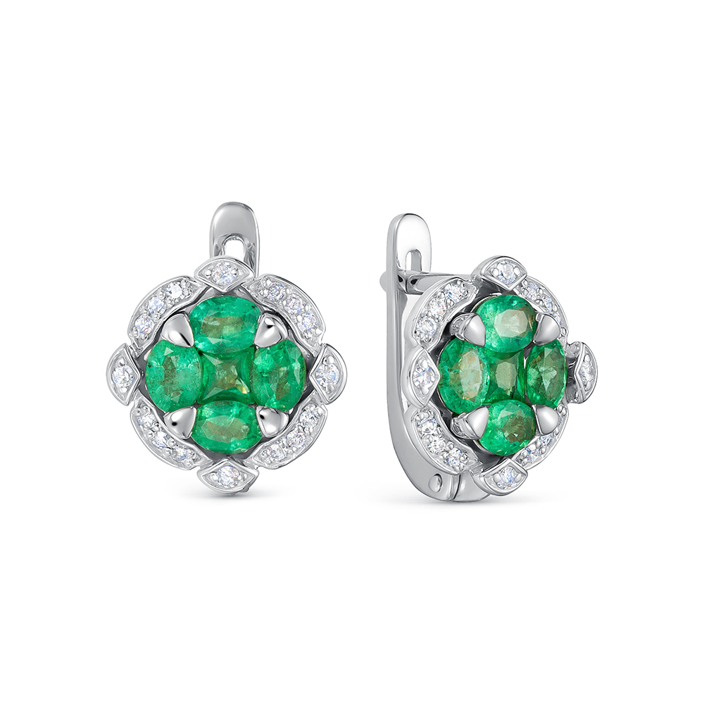 Серьги из белого золота с изумрудами и бриллиантами 134806