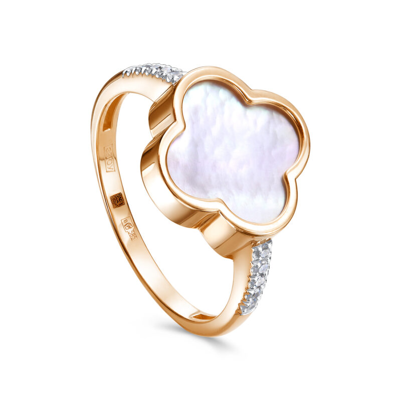 Кольцо из красного золота с перламутром и бриллиантами 134822