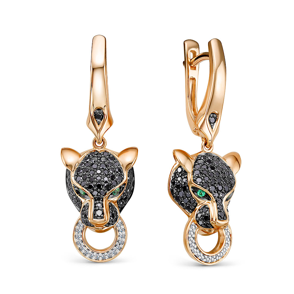 Серьги из красного золота с изумрудами и бриллиантами 142118