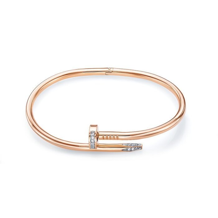 Браслет жесткий в красном золоте с фианитами