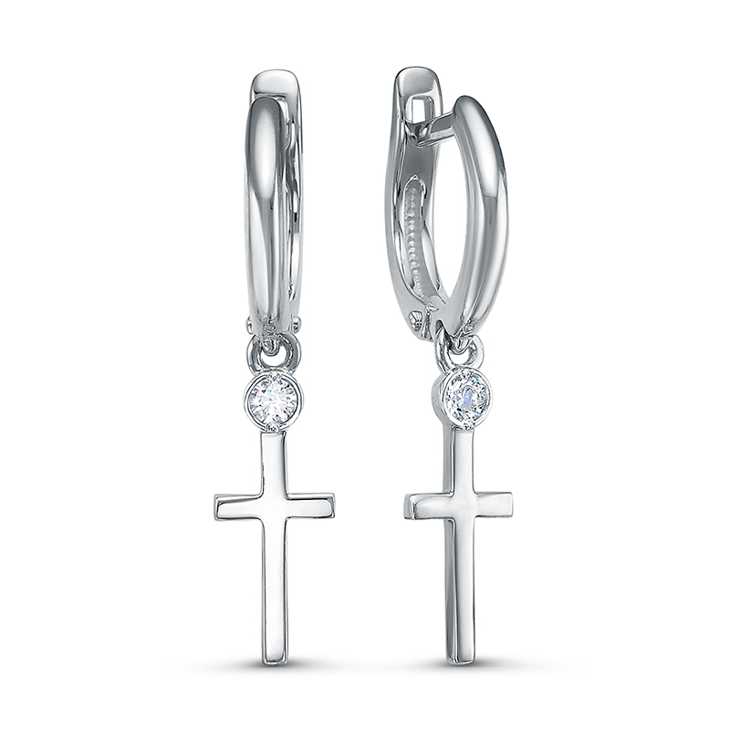 Серьги из белого золота с фианитами