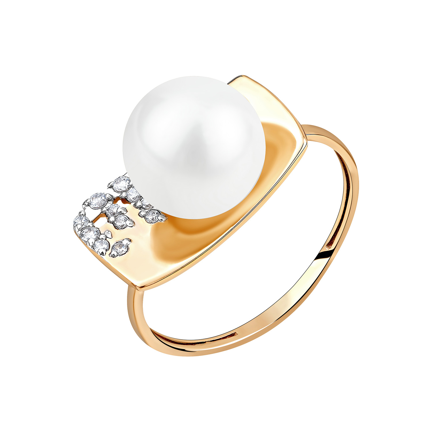 [NAME] => Кольцо из красного золота с жемчугом и фианитами