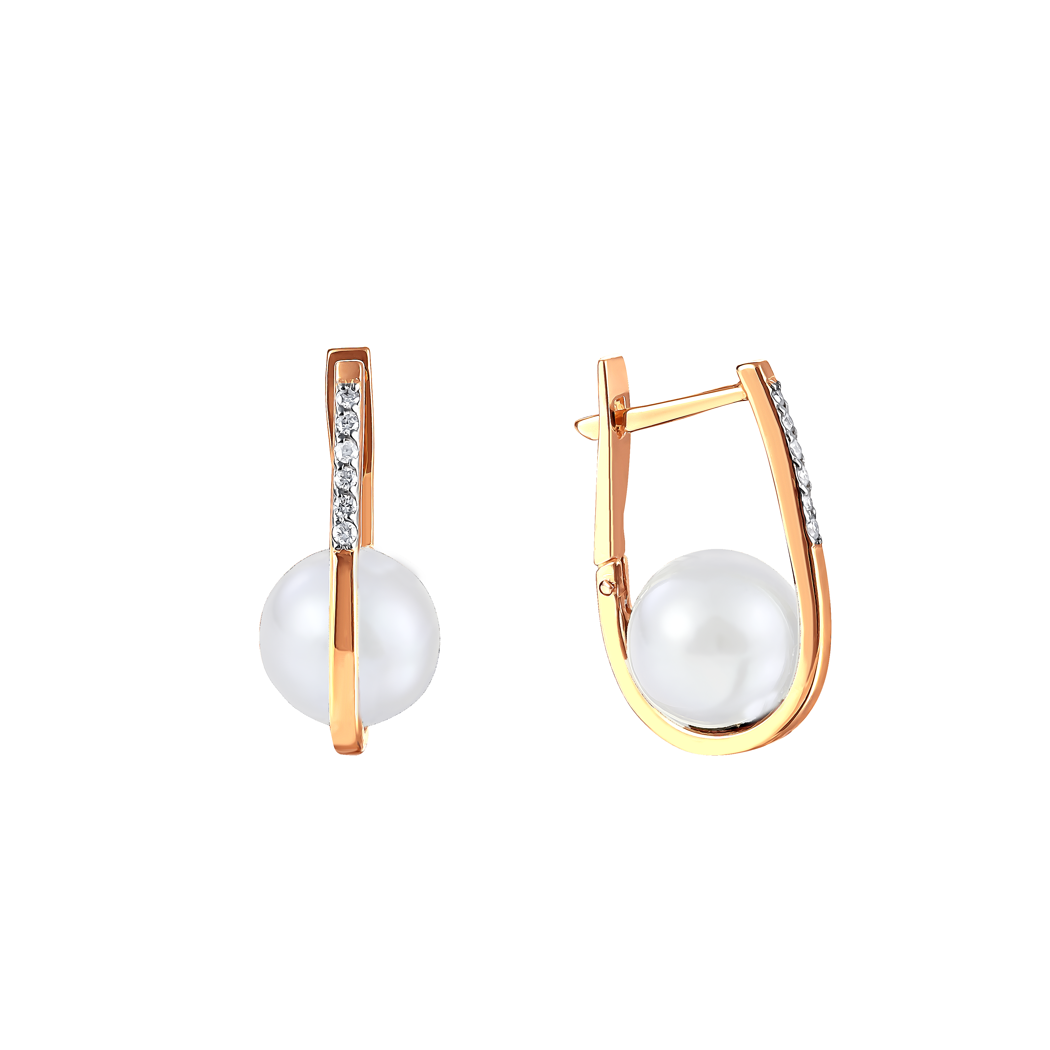 Серьги из желтого золота с жемчугом и фианитами 144184