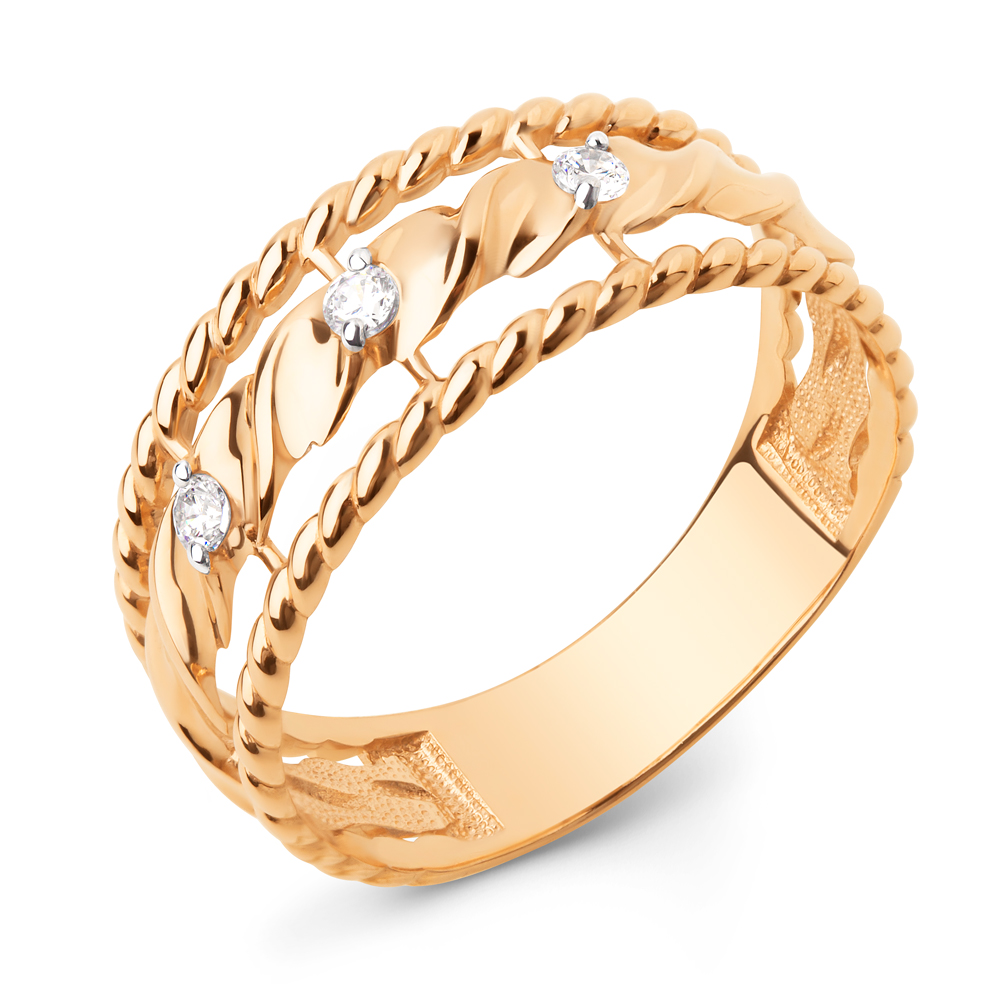 Кольцо из красного золота с фианитами 145411