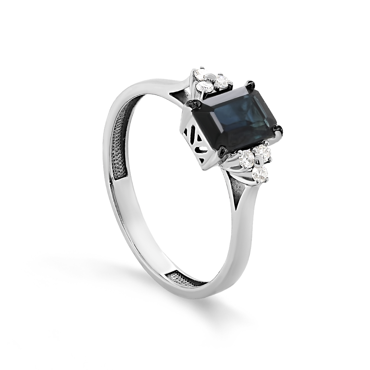 Кольцо из белого золота с сапфиром и бриллиантами