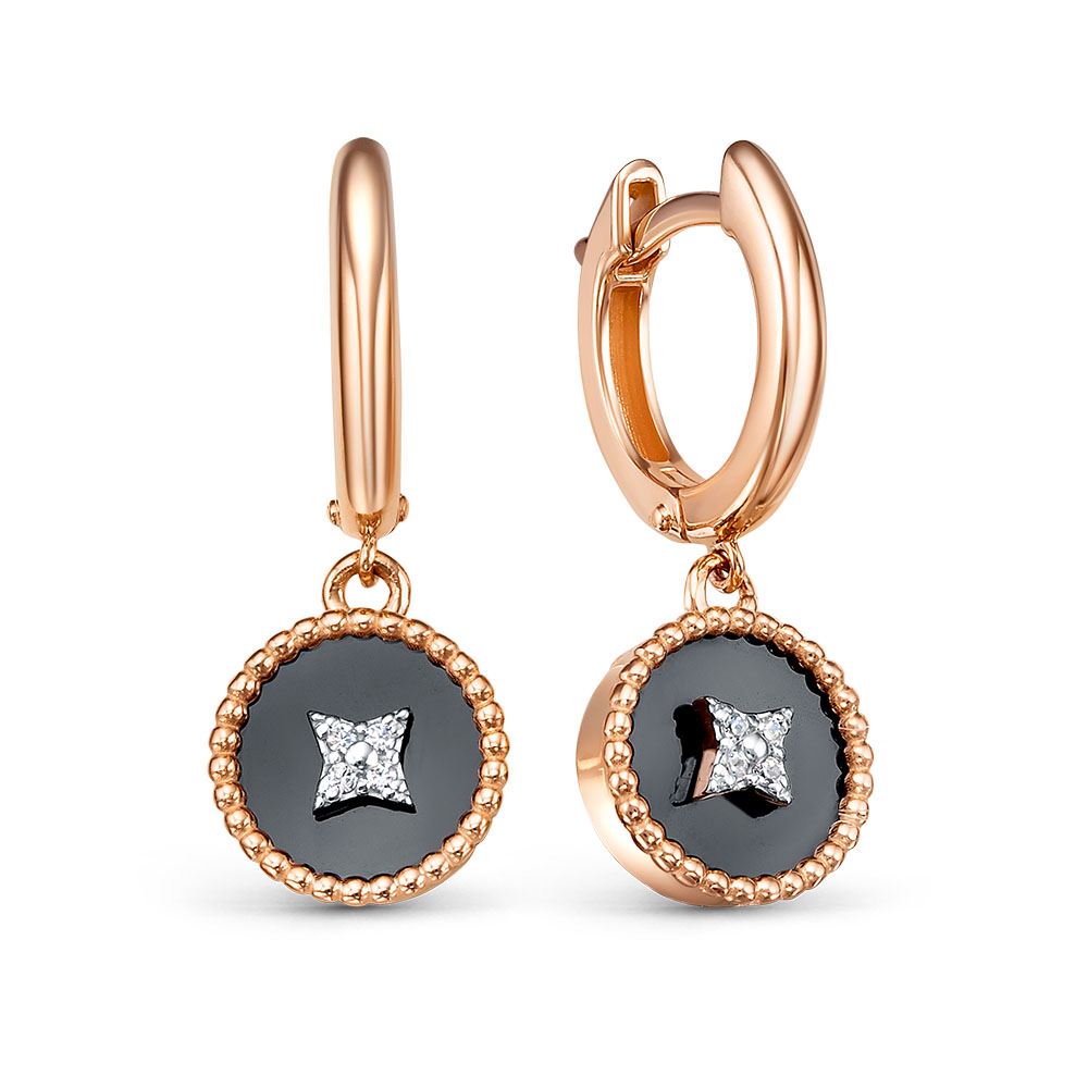 Серьги из красного золота с фианитами и ониксом 147648