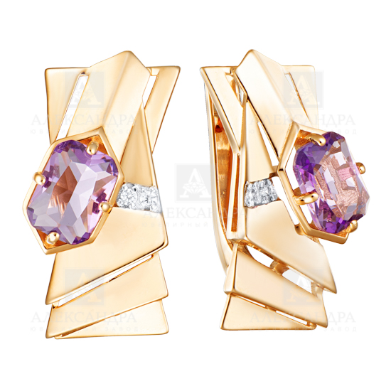 Серьги из красного золота с аметистами и фианитами 148765