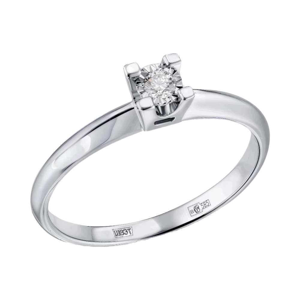 Кольцо помолвочное из белого золота с бриллиантом