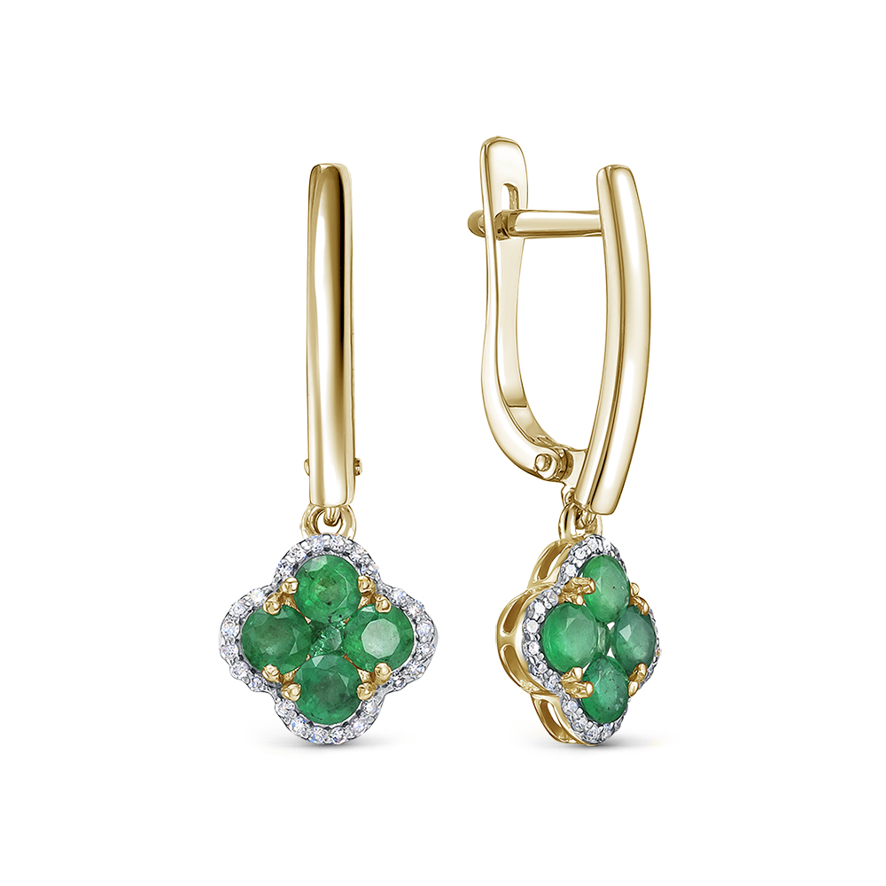 Серьги из желтого золота с изумрудами и бриллиантами