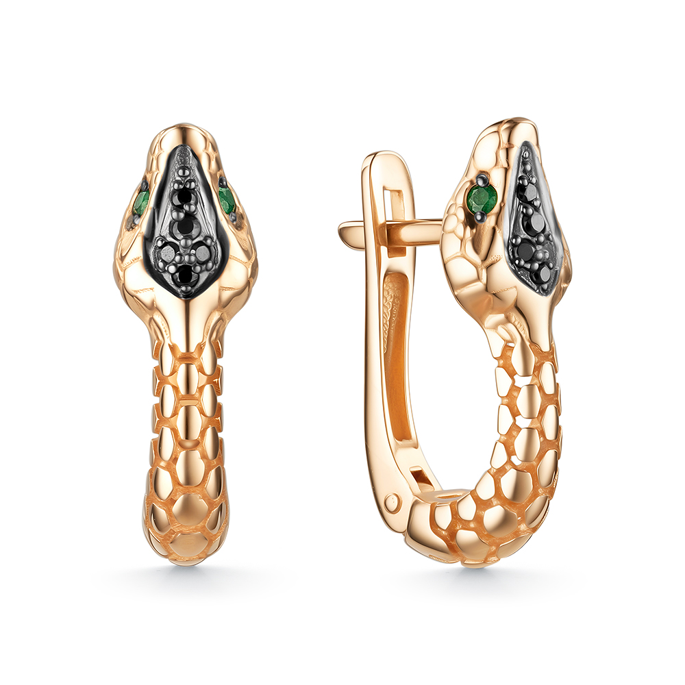 Серьги из красного золота с изумрудами и бриллиантами