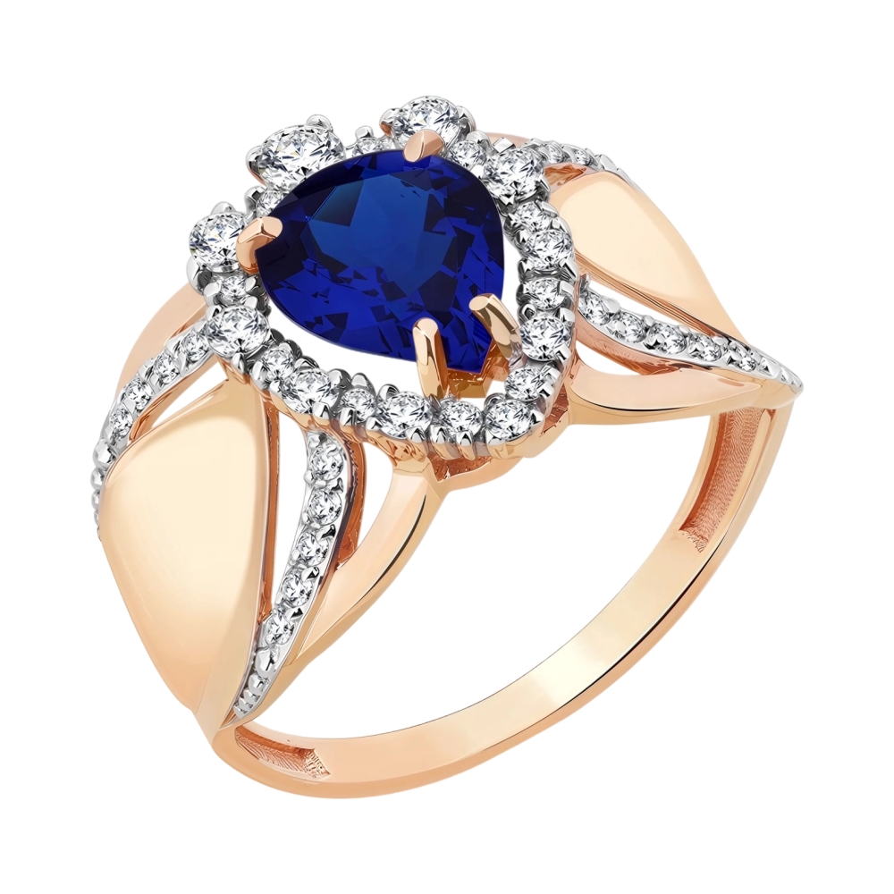 Кольцо из красного золота с сапфиром синт. и фианитами