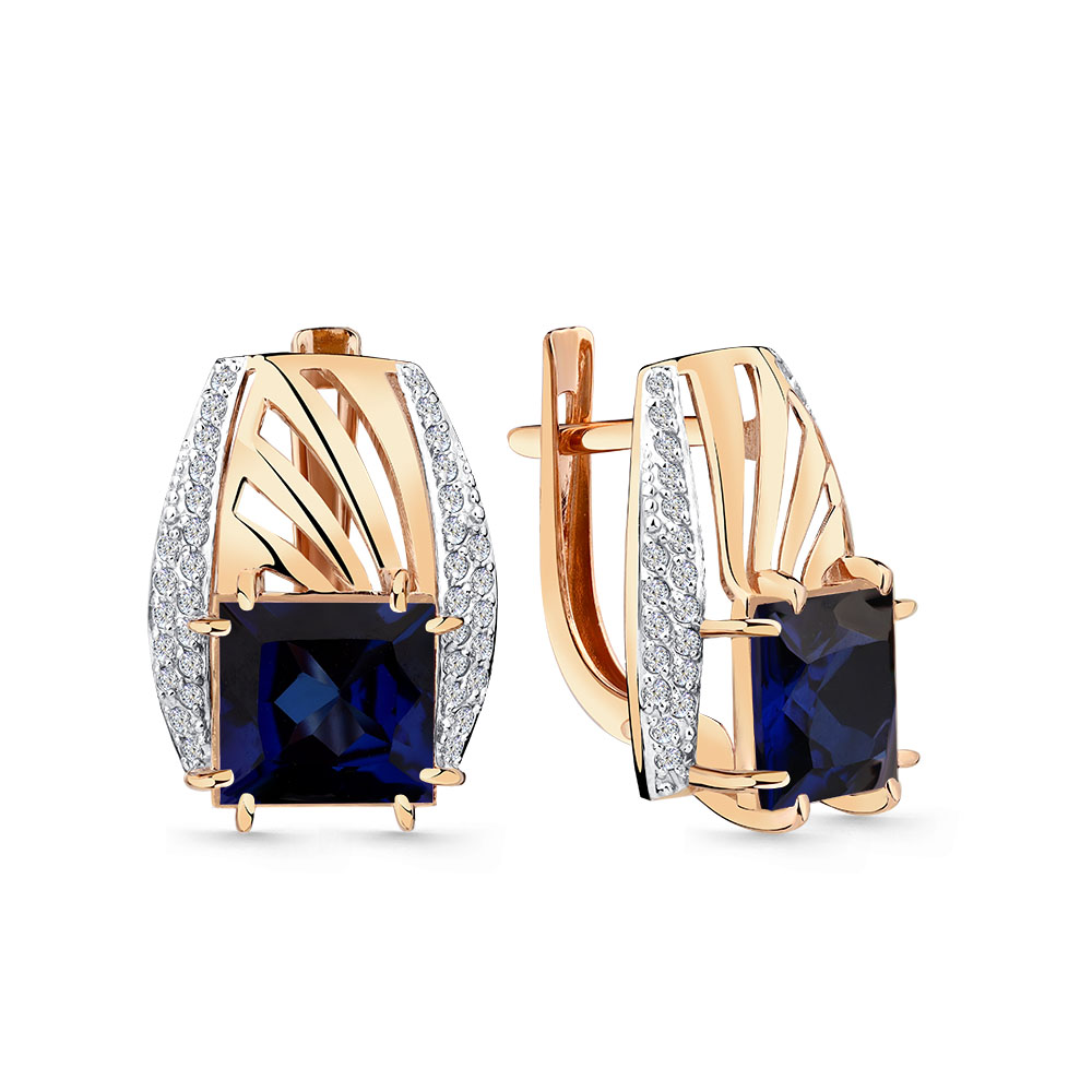 Серьги из красного золота с сапфиром синтетическим и фианитами 151668