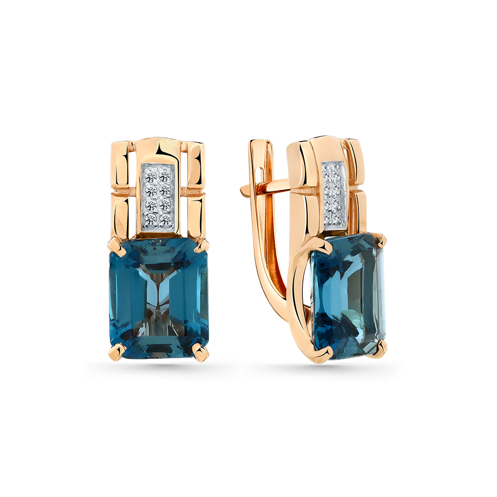 Серьги из красного золота с Лондон топазом и фианитами 151669