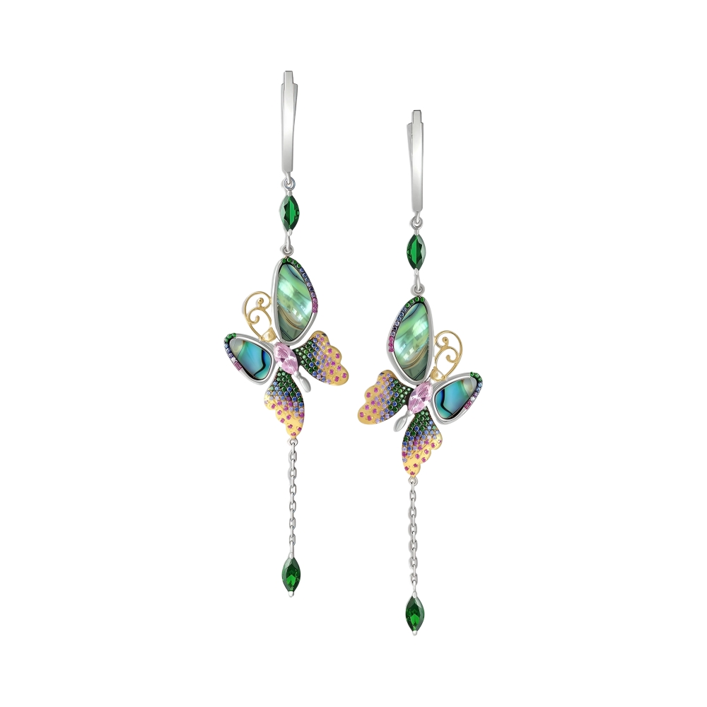 Серьги из серебра с перламутром и фианитами