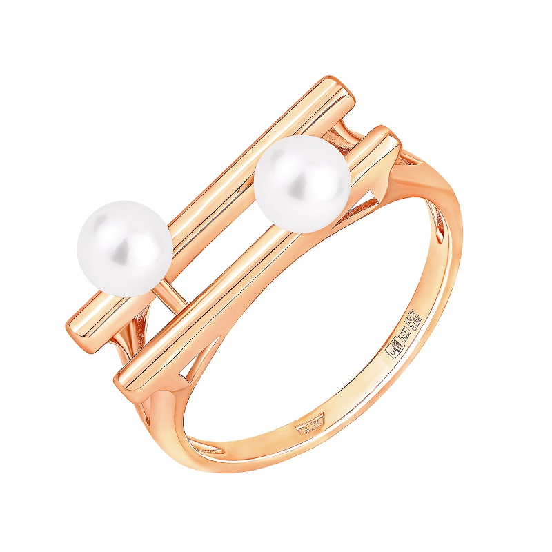 Кольцо из красного золота с жемчугом