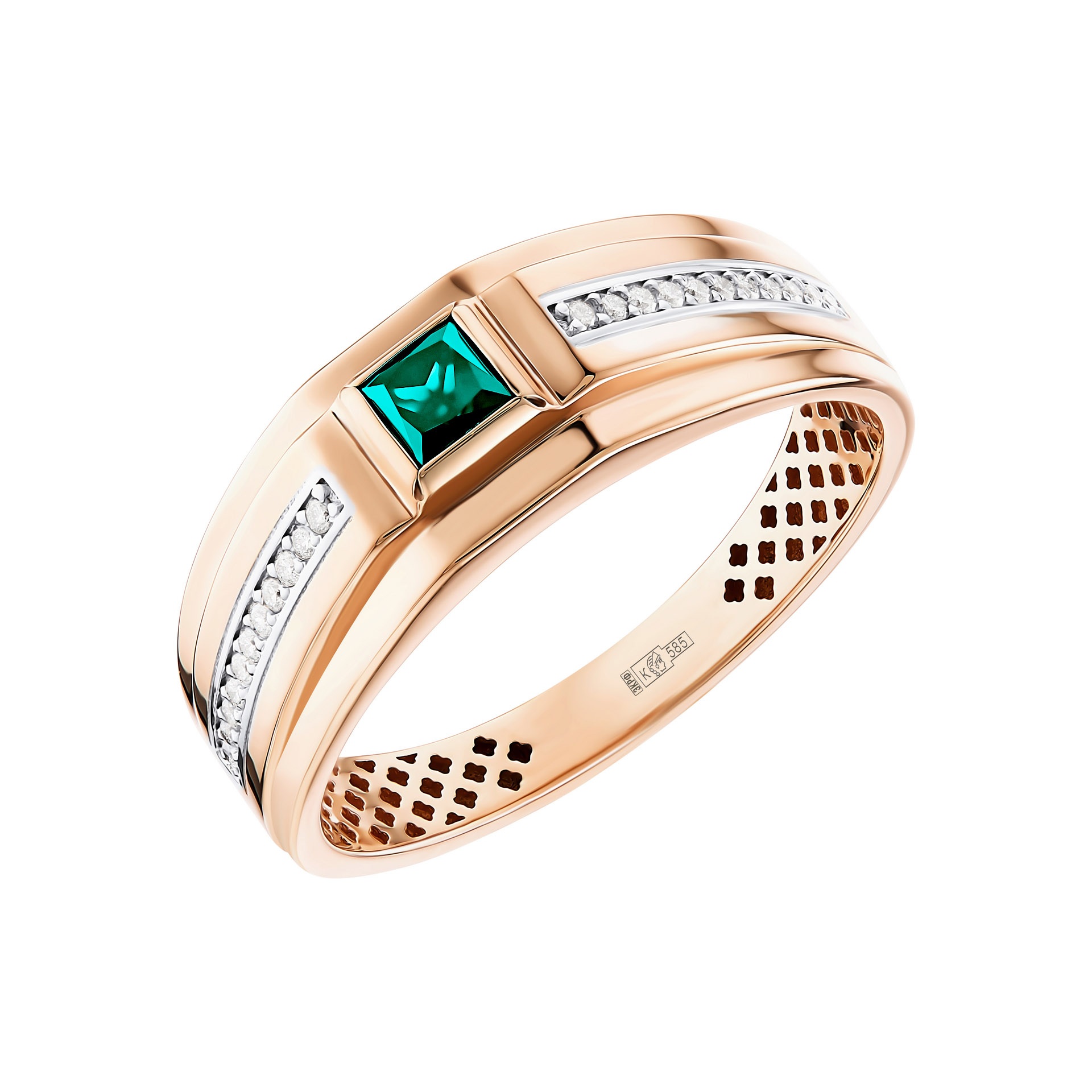 Мужская печатка из красного золота с изумрудом и бриллиантами 153634